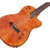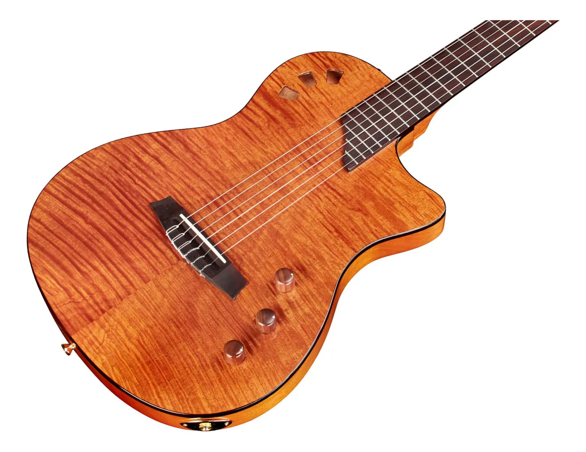 Esta guitarra de cuerpo delgado y cuerdas de nylon llenará todo escenario con su estilo y tono increíble. Su chapa de arce flameado sobre la tapa de abeto llama la atención de inmediato y su cuerpo de caoba ahuecada disminuye su peso mientras añade resonancia, haciéndolo tremendamente cómodo a la hora de tocar. Por último, su mástil ergonómico hacen que la comodidad llegue a nuevos niveles. Si no es amor a primera vista, lo será cuando comiences a tocar.