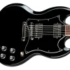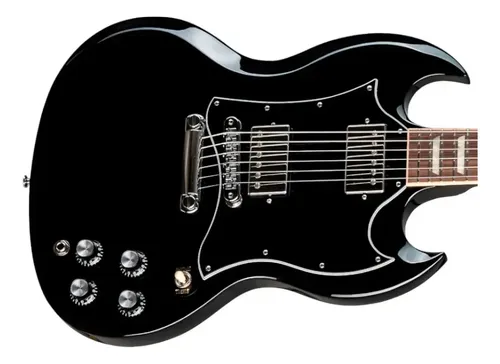 Esta guitarra SG es una variación de la Les Pauls que popularizó Angus Young de AC/DC. A diferencia de la Les Paul y Stratocaster, es bastante ligera de peso, con menos graves, pero muy dinámica y viva, lo que la hace perfecta para el blues y el rock.