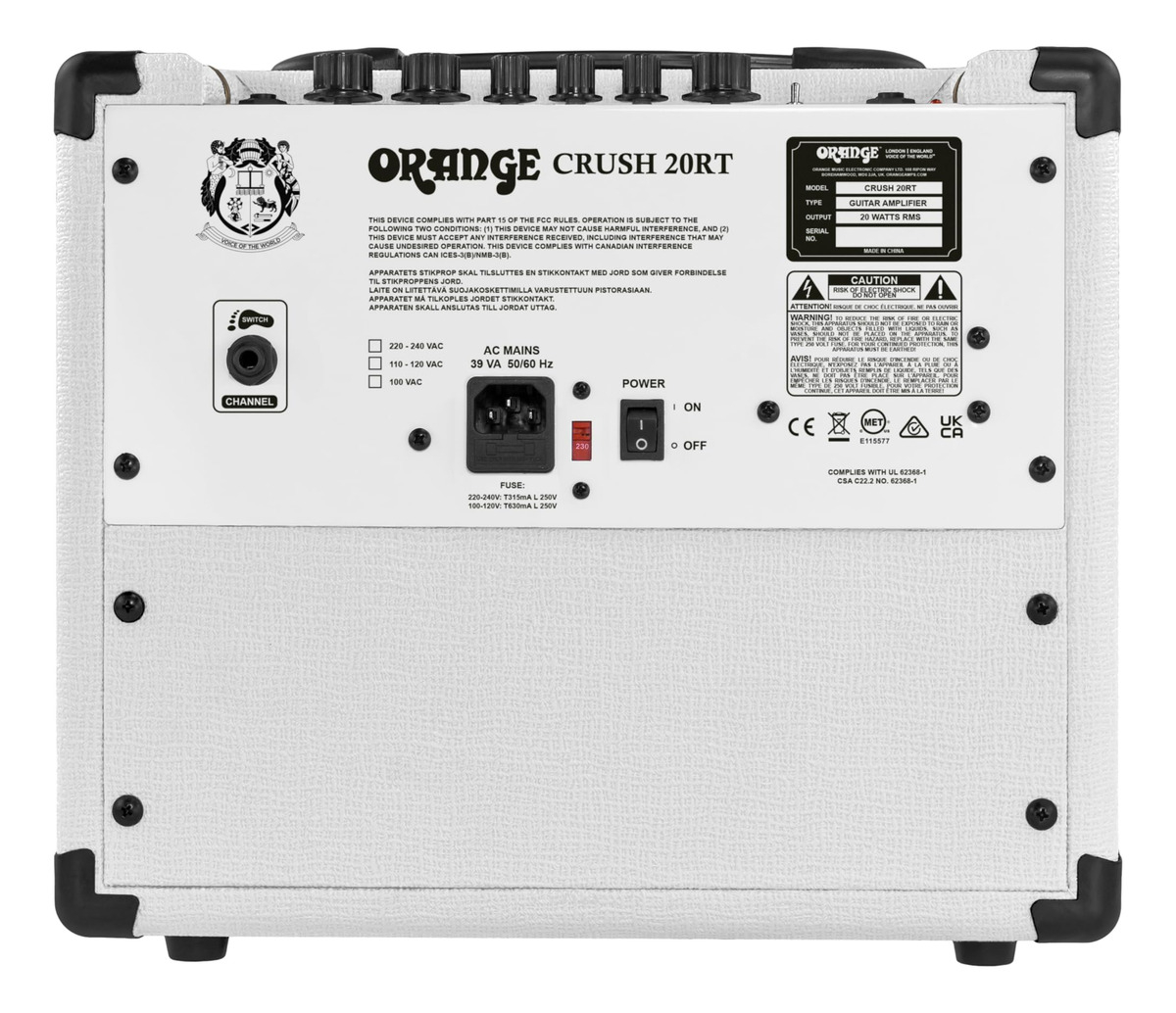 El gran impacto logrado a través del altavoz Voice of the World de 8″ custom del Crush 20RT es asombroso, con una entrega imponente y una profundidad de sonido que contradice el modesto tamaño del amplificador. Se completa con una entrada auxiliar para pistas de acompañamiento y una salida de auriculares cargada con CabSim, que hacen del Crush 20RT es el combo de amplificador de práctica portátil perfecto, que combina características utilizables con el legendario tono Orange y cubos del clásico mojo Orange.