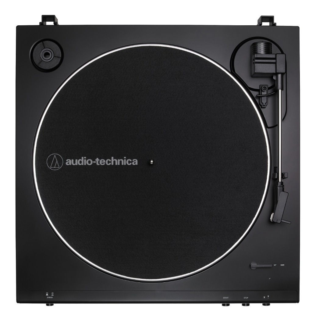 Tanto si acaba de llegar al mundo del vinilo, está redescubriendo una colección de discos olvidada durante años o simplemente desea incorporar un tocadiscos para completar su sistema, el tocadiscos de transmisión por correa totalmente automático AT-LP60X es una opción excelente. Asequible y fácil de utilizar, el tocadiscos reproduce discos tanto de 33-1/3 como de 45 rpm y, gracias a su preamplificador fonográfico conmutable incorporado, puede conectarse directamente a su equipo estéreo doméstico, altavoces con alimentación, computadora y otros componentes, tengan o no una entrada fonográfica (phono) dedicada.