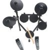 Pads: Redoblante de 8, 3 TOM Pads de 8», 3 platillos de 10 ( crash, ride y hi-hat), 1 control de Hi-Hat, 1 trigger para bombo