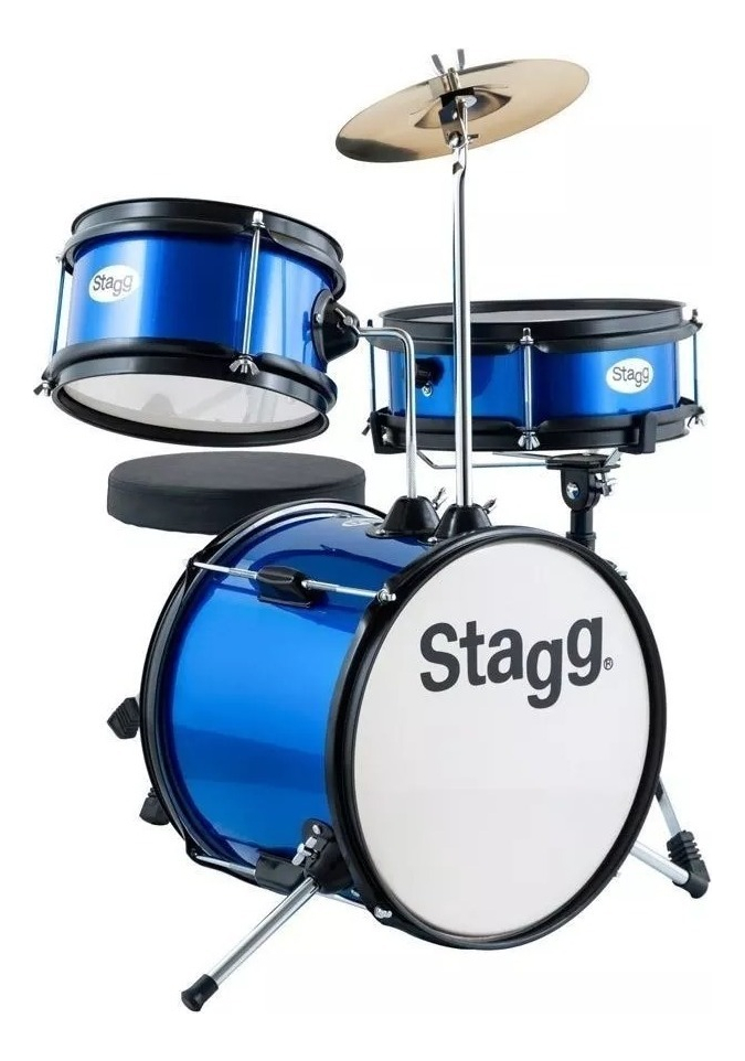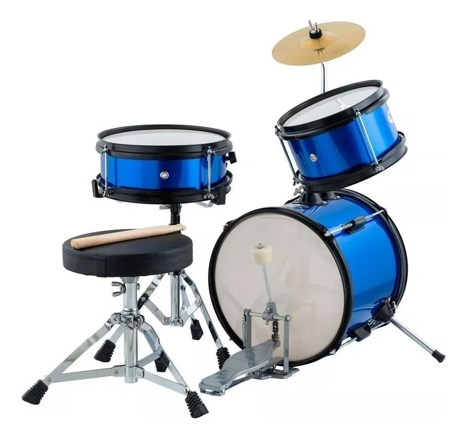 Bateria Niños 3 Cuerpos Platillo Pedal Banqueta Y Palillos Color Azul