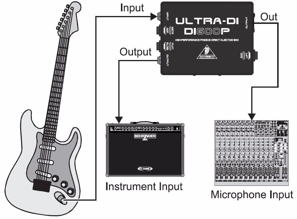 – La toma Thru / Out le permite enviar la señal desbalanceada a un amplificador en el escenario mientras la señal balanceada se enruta al mezclador