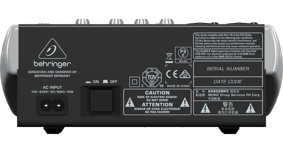 Behringer Qx602 Mp3 Consola 6 Canales 2 Mono 2 Estereo Usb