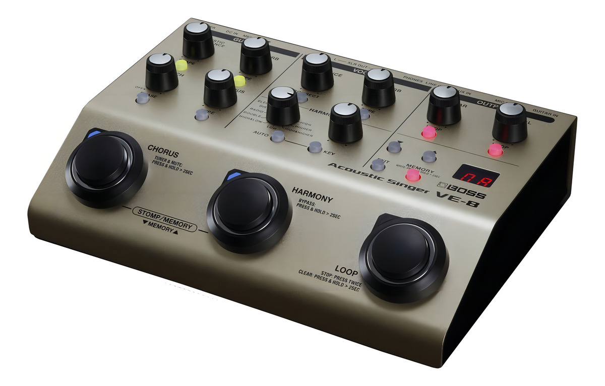 Si eres cantante o cantautor y tocas la guitarra acústica, conoces muy bien el significado de la palabra «competencia». El VE-8 Acoustic Singer te ofrece ese punto extra para destacar y brillar con luz propia, con un sonido BOSS profesional en todas tus actuaciones. El VE-8 es fácil de usar, proporciona procesamiento de voz y guitarra con calidad de estudio y añade impresionantes armonías en tiempo real y loops en un diseño compacto y superportátil. Con un sonido fantástico y potentes funciones creativas a tu alcance, seguro que triunfas bolo sí y bolo también.