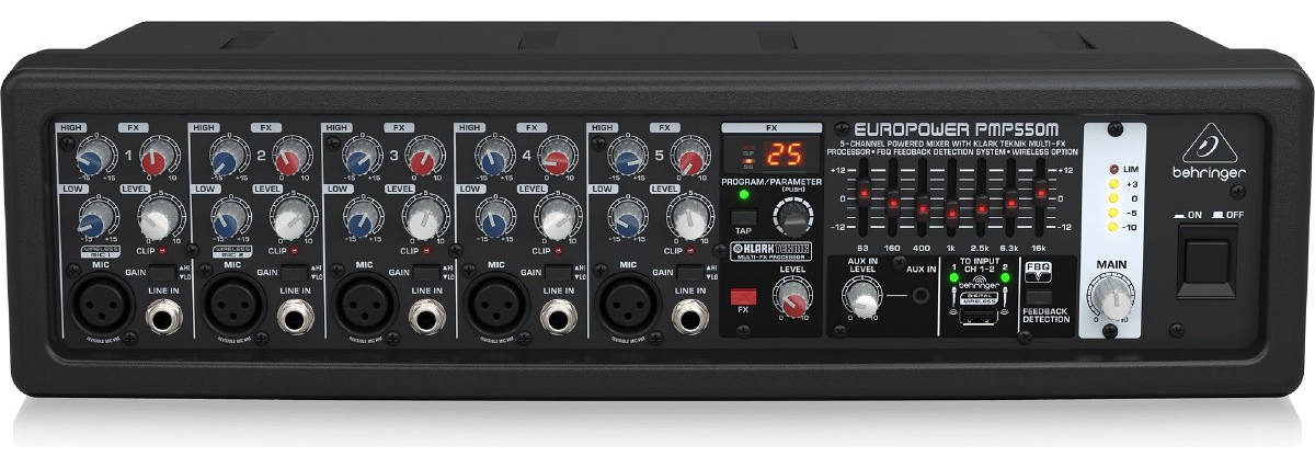 BEHRINGER PMP550M CONSOLA POTENCIADA 5 CANALES 500 WATTS