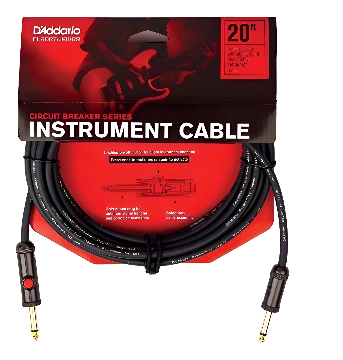 Planet Waves presenta un cable increíble. Plug plug para conectar de la guitarra/bajo/etc al amplificador. Cuenta con un interruptor, que al presionar una vez sirve para silenciar la señal al amplificador completamente. Presione nuevamente para reactivar el flujo de la señal. Show Music, te lo recomienda.