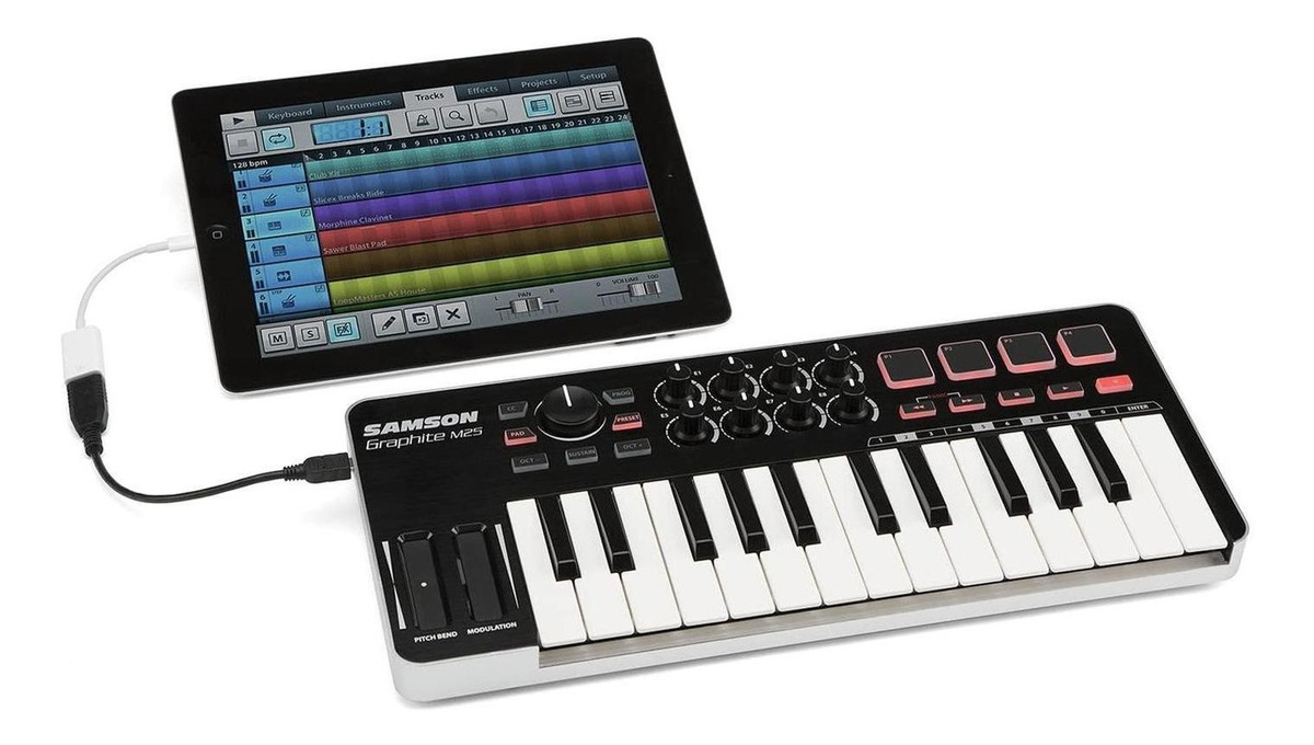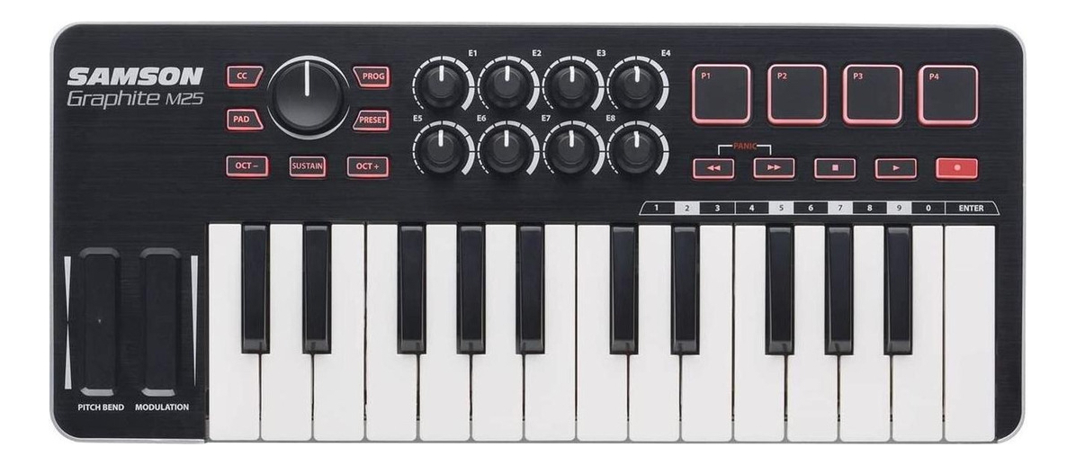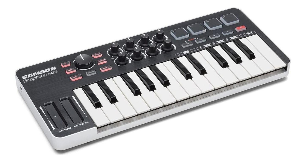 El Controlador USB/MIDI 25 Teclas Sakgrm25 de la reconocida marca Samson es de color negro, lo que le da un aspecto elegante y moderno. Su calidad de construcción garantiza durabilidad y resistencia, para que puedas disfrutar de él durante mucho tiempo.