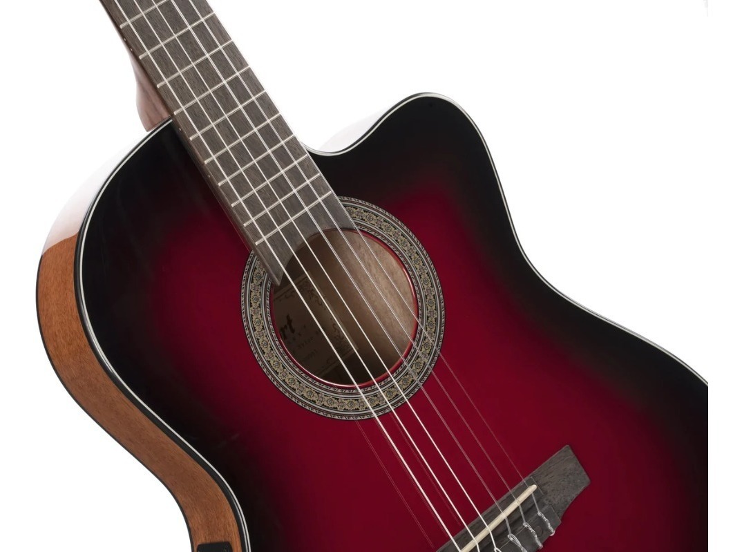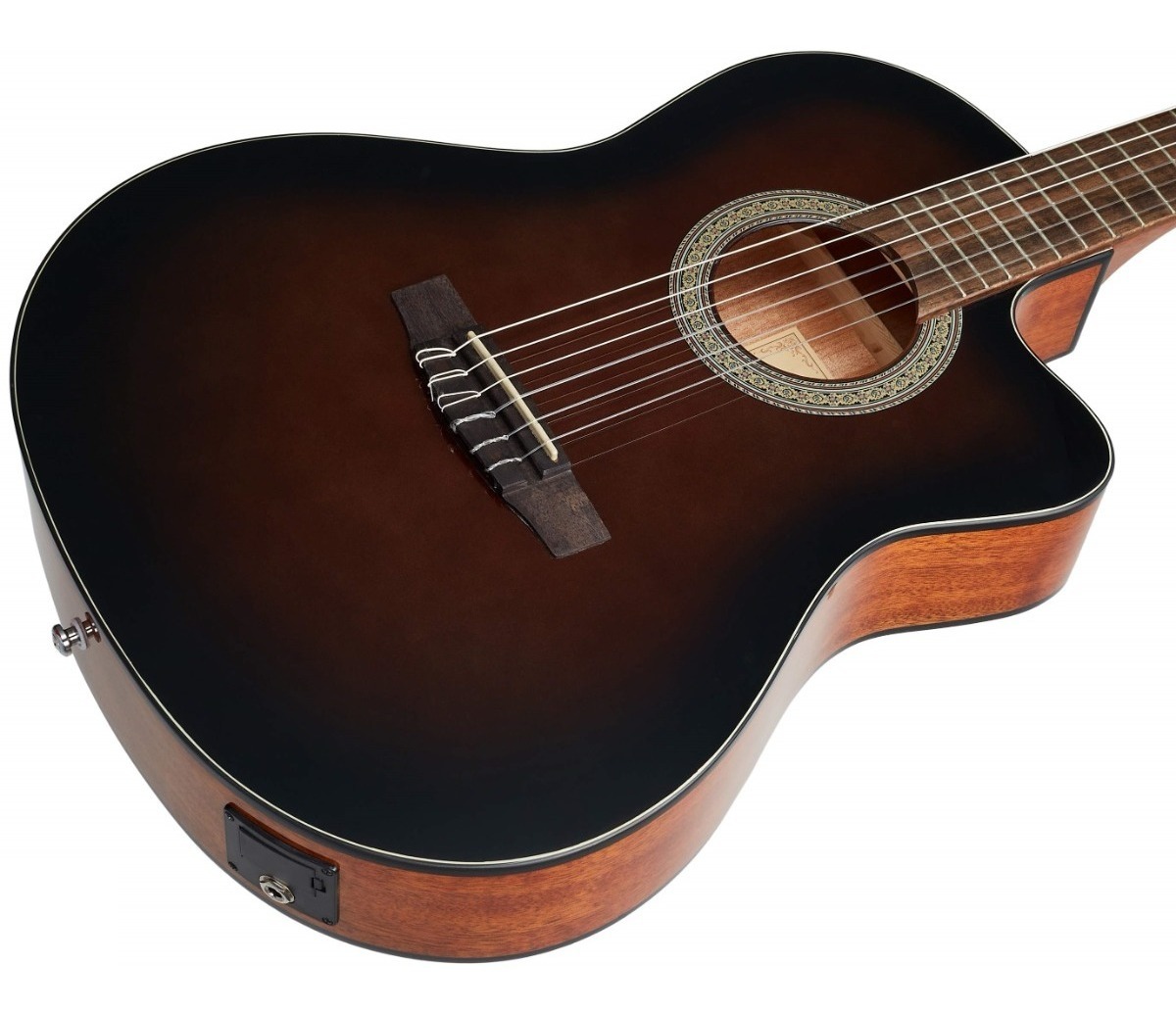 La nuevo Jade E Nylon es la versión moderna de Cort de la forma más antigua de guitarra, utilizando un cuerpo de tamaño clásico más pequeño con especificaciones de mástil modernas para crear una guitarra híbrida de cuerdas de nylon que es más adecuada para los guitarristas de hoy en día que pueden encontrar las guitarras clásicas tradicionales difíciles de acostumbrarse. La Jade E Nylon entrega un gran sonido balanceado y una ejecución más fácil con un mástil más delgado y un cutaway más profundo para ejecutantes experimentados y principiantes por igual. También está equipado con el sistema electrónico Cort® CE304T con ecualizador de 3 bandas para actuaciones en el escenario.