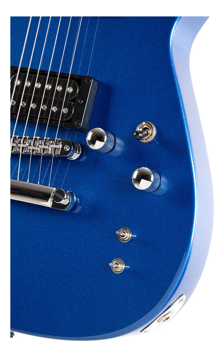 The controls on the MBM-2H-SUS are simple while versatile. There is a single volume control, master tone and a three way switch. This controls the 2 humbucker pickup combination. It all works together with the kill button and the overall instrument design to give you a highly creative and great sounding instrument. Los controles en la MBM-2H-SUS son simples y a la vez versátiles. Hay un control de volumen único, tono maestro y un interruptor de tres vías. Este controla la combinación de 2 pastillas humbucker. Todo funciona junto con el botón de apagado (kill button) y el diseño general del instrumento para brindarte un instrumento altamente creativo con un gran sonido.