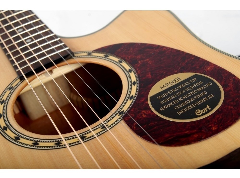 La serie MR representa la misión de Cort de proporcionar instrumentos tradicionales de la más alta calidad con una mano de obra superior y características modernas a un precio inmejorable. La MR710F es tapa sólida de Abeto Sitka, parte posterior y lados de Caoba, diapasón de Ovangkol. El cuerpo acorazado clásico tiene un cutaway Veneciano para un fácil acceso a los trastes altos y está equipada con electrónica Fishman Presys II para entregar el sonido acústico natural de la MR a un sistema de amplificación para aplicaciones en vivo y de grabación.