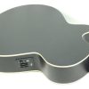 Esta guitarra acústica electrificada presenta aros estrechos de 83mm. Su tapa es de abeto, con aros, fondo y mástil de caoba. El diapasón y el puente están hechos de palo rosa. Cuenta con 20 trastes y una escala de 25.3″. Las pastillas son cerámicas y el previo es Cort CE304T. Su acabado es Black Satin.