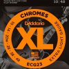 Las cuerdas de la serie Chromes de D’Addario están entorchadas con un cordón de acero inoxidable aplanado y pulido, proporcionando una superficie extremadamente suave. Estas cuerdas producen armónicos ricos y un sonido con cuerpo, características distintivas del entorchado plano.