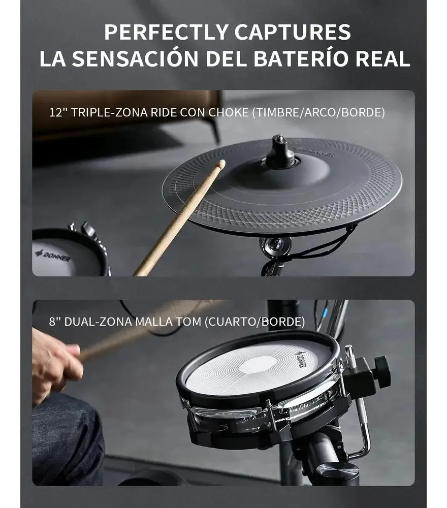 Bateria Electronica 5 Cuerpos Mesh Donner Beat Ec6983 Negro