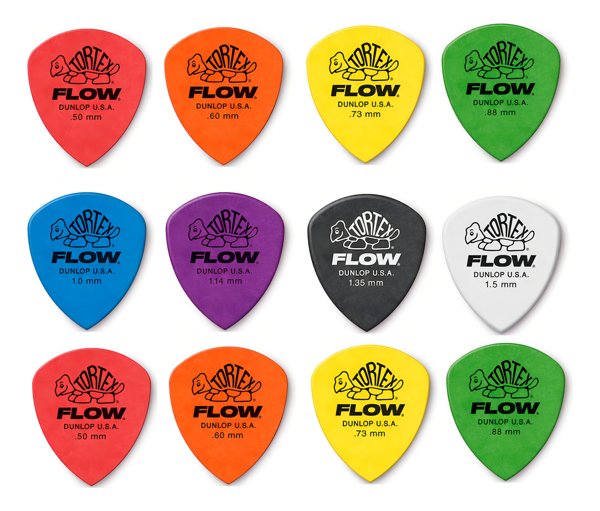 Dunlop Flow combinan la estabilidad dimensional y la durabilidad de Tortex. Las púas