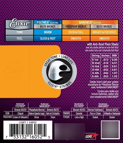 Elixir 16052 Encordado Guitarra Acustica P Bronze 012