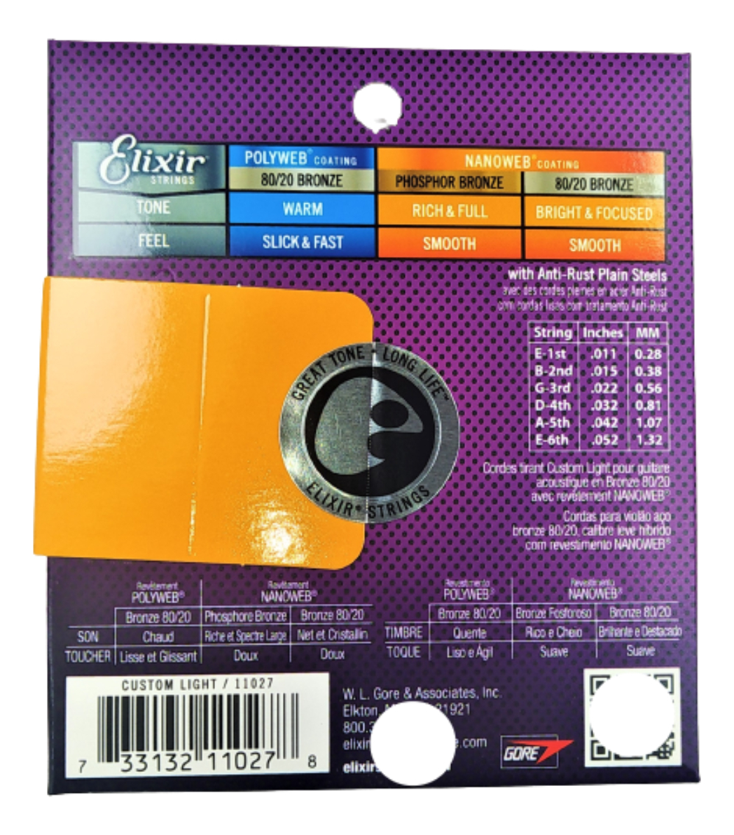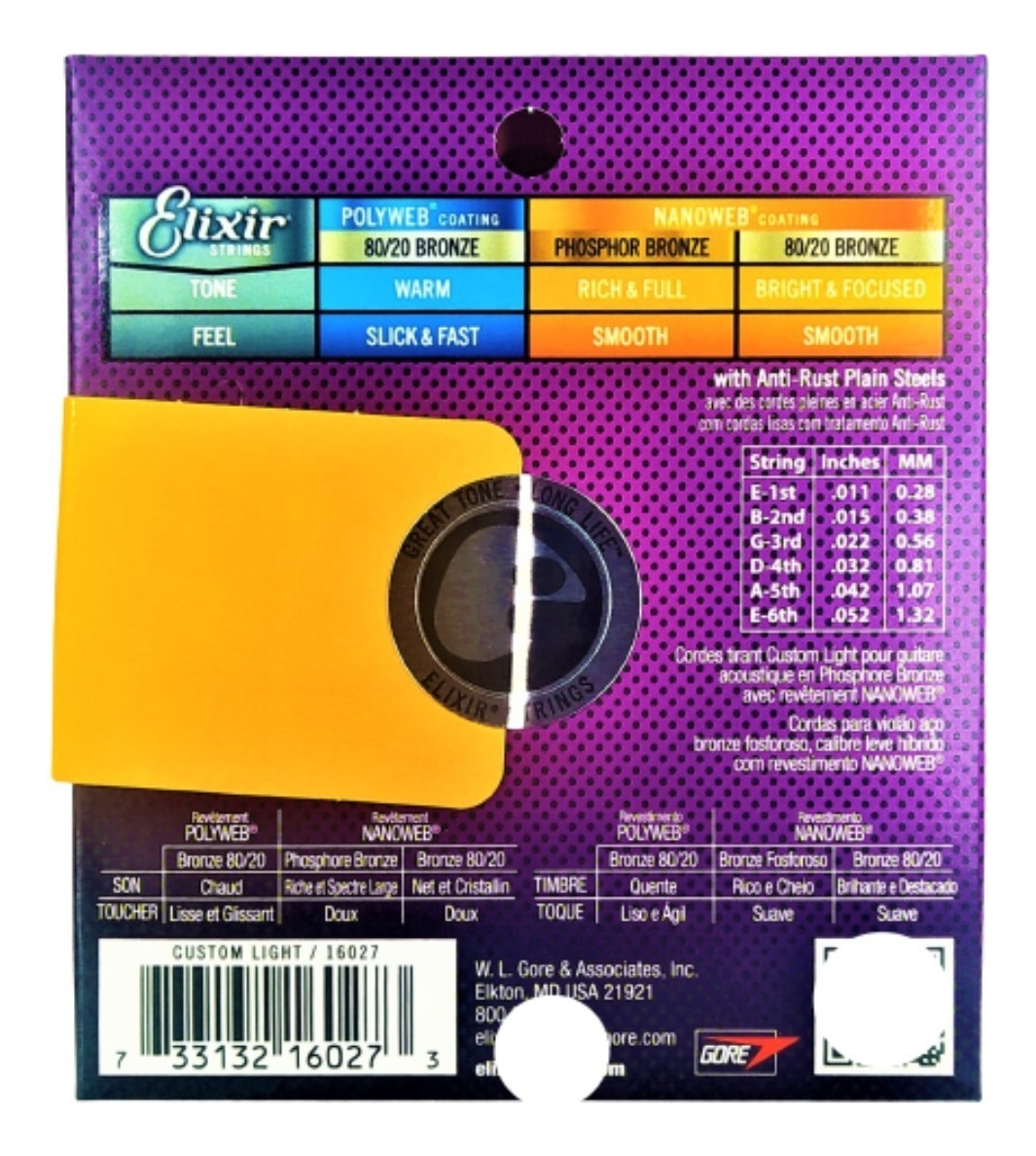 Elixir 16027 Encordado Guitarra Acustica P Bronze 011