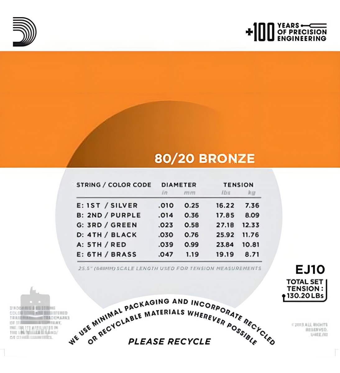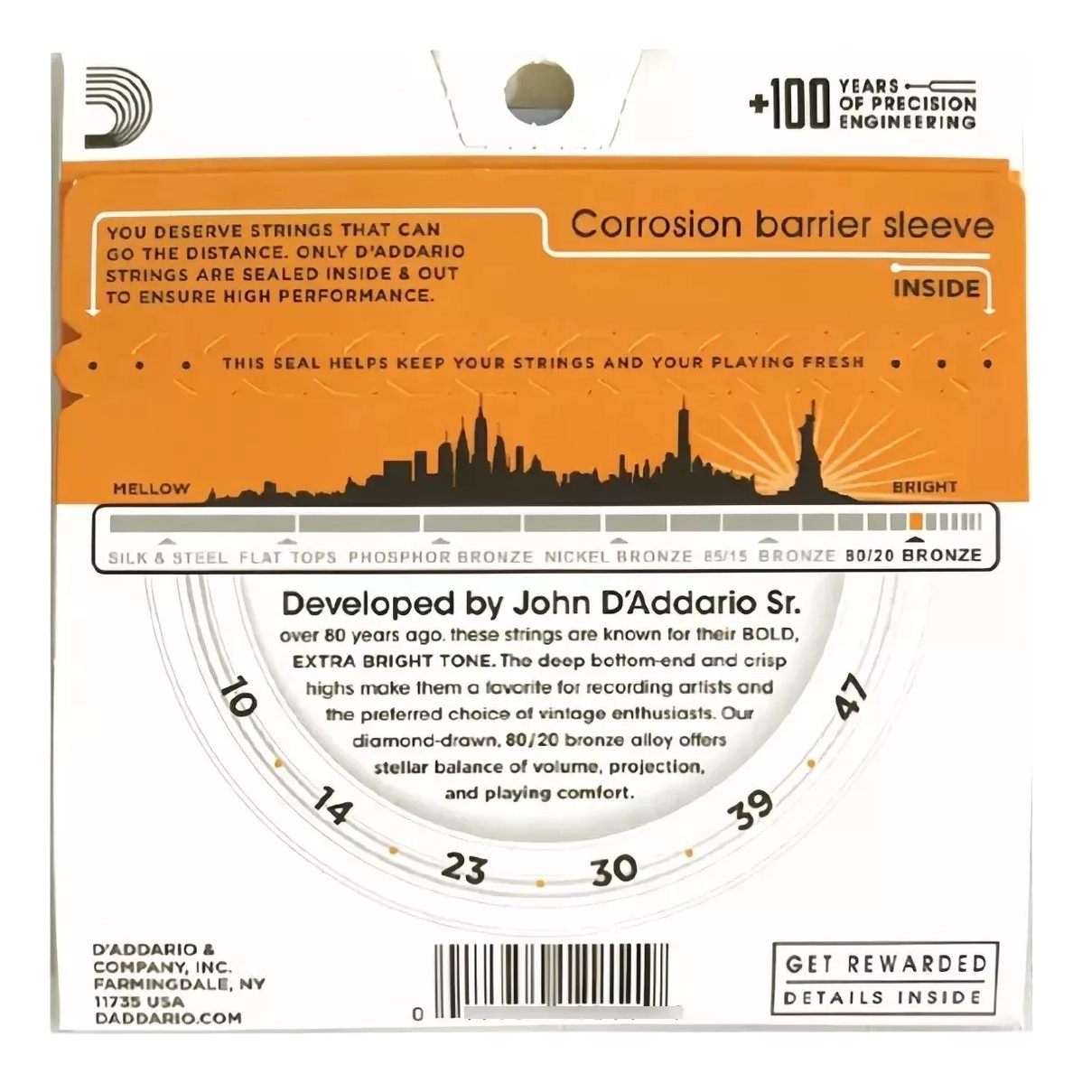 Daddario Ej10 Cuerdas Guitarra Acustica 010 Bronce 80 20