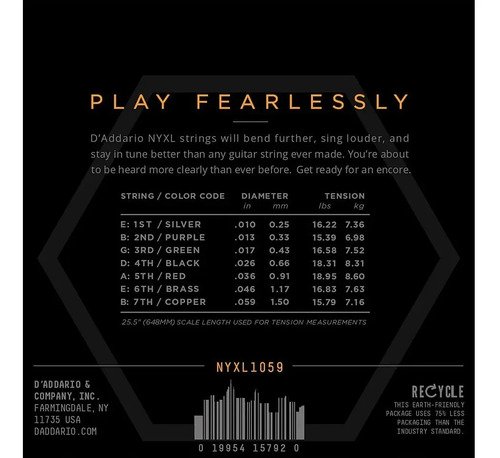 Daddario Nyxl1059 Encordado Guitarra Electrica 7 Cuerdas 010