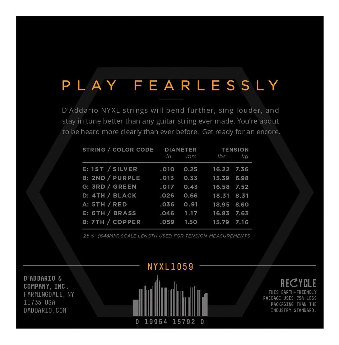 Encordado Daddario Nyxl1059 010 059 G Electrica 7 Cuerdas