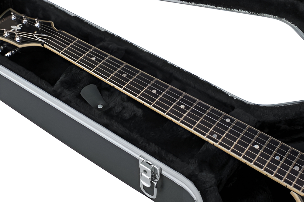 El estuche moldeado de lujo GC-335 está diseñado para adaptarse a las guitarras semicaja Gibson 335® y de estilo similar. Forrado con tela de felpa y equipada con un núcleo de espuma EPS, el estuche se adapta a la forma de la guitarra y brinda soporte a todas las áreas más delicadas. La carcasa exterior está moldeada de plástico ABS ultra resistente, un material semiflexible capaz de absorber los impactos y soportar el abuso de los viajes. Los bordes de aluminio de alta resistencia aseguran un ajuste apretado mientras que los pestillos bloqueables le permiten asegurar la carcasa de forma rápida y fácil. Para guitarras acústicas semicaja y la Gibson 335®, el GC-335 es el único estuche que necesitará.