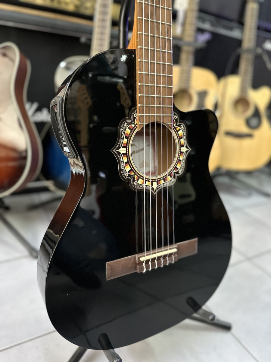 Fonseca 38kec Negra Guitarra Electro Criolla Corte Mate