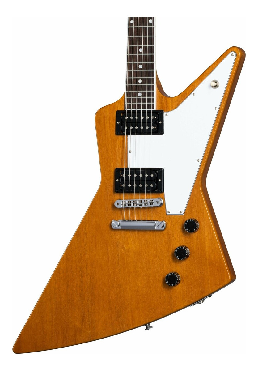La guitarra eléctrica Gibson 70s Explorer en Antique Natural es un icono musical que ha recorrido escenarios de todo el mundo, y ahora regresa para explorar una nueva generación de músicos. Este modelo, caracterizado por su diseño futurista y singular, es un homenaje a la era musical que ayudó a crear. Su cuerpo, de forma audaz y única, está construido en caoba, aportando un tono cálido y resonante. El mástil, también de caoba, tiene un perfil delgado y está rematado con un diapasón de palisandro, delineado y con 22 trastes, adornado con incrustaciones de puntos acrílicos, que ofrecen una apariencia clásica y una experiencia de juego suave.