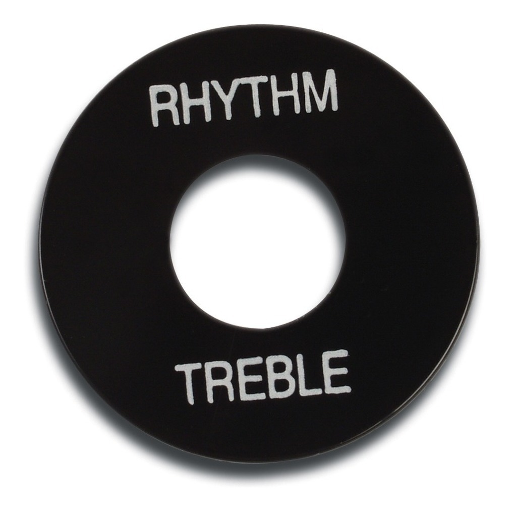 cuerpos más populares Gibson Solid en negro con impresión blanca ‘Rhythm’ y’Treble’.