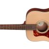 Construido con una tapa de abeto sólida, lados de caoba y parte trasera de caoba arqueada, el tono de cuerpo completo y potente de este gremio dreadnought proporciona a los guitarristas un sonido acústico clásico y una voz equilibrada