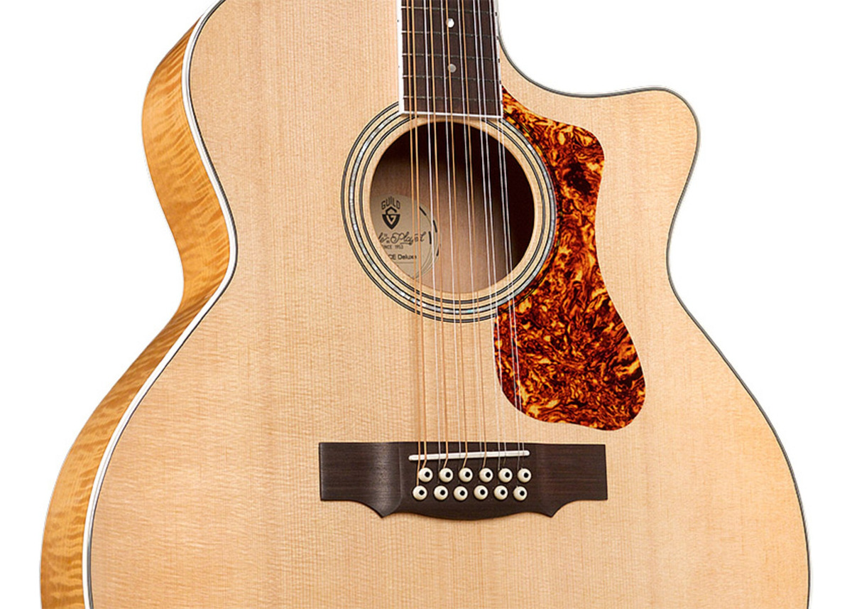 Las doce cuerdas y el cuerpo jumbo de la F-2512CE Deluxe, combinados con su fondo arqueado, dan a esta guitarra una proyección y un sustain sin igual, una adición bienvenida al legado de Guild de instrumentos de 12 cuerdas de calidad.