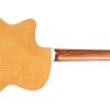 Esta guitarra jumbo es una potencia de 12 cuerdas, con una tapa de abeto macizo con un impresionante fondo de arce flameado arqueado y aros de arce flameado.
