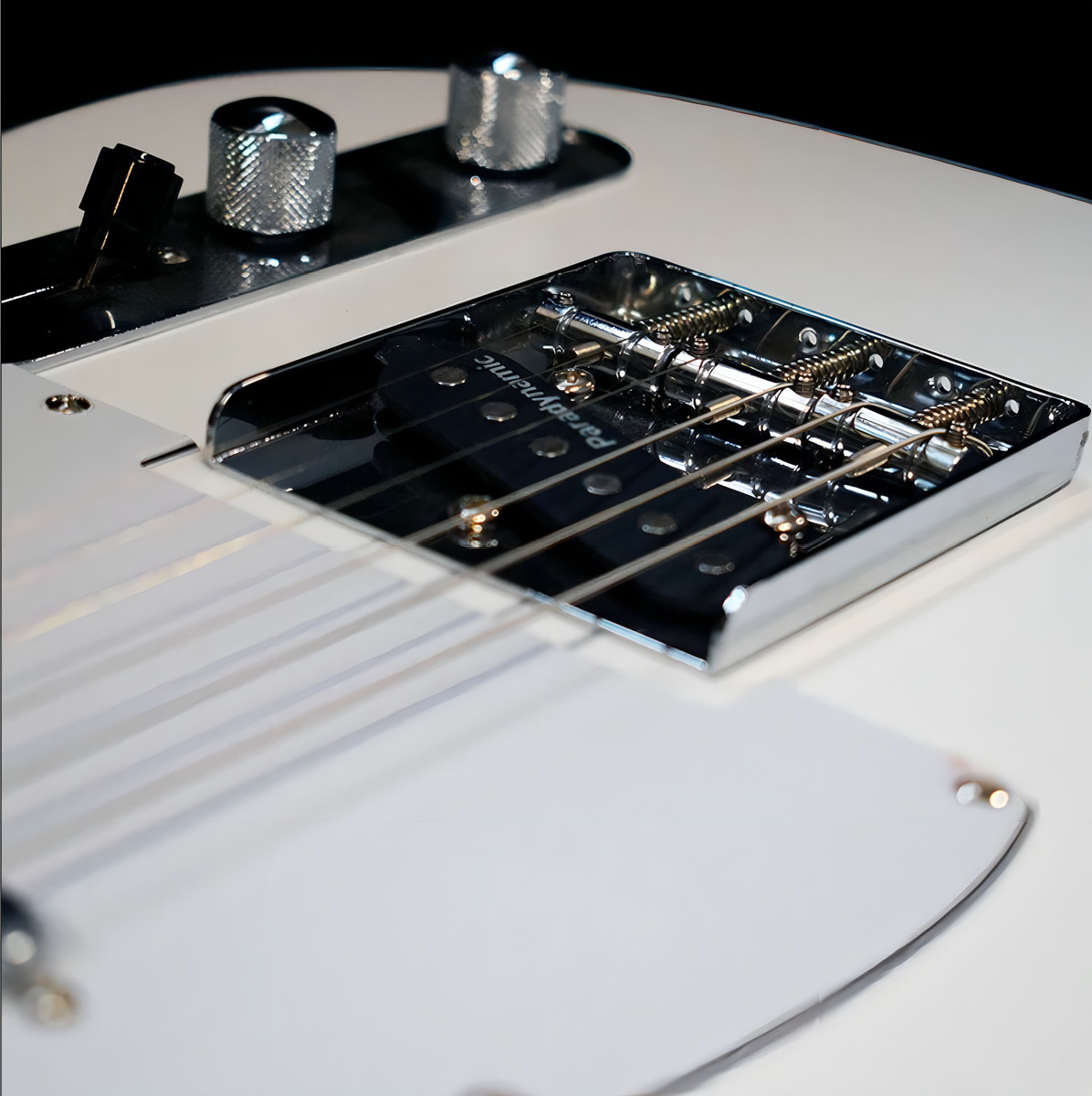 La guitarra eléctrica Newen TL Newen de lenga blanca laca poliuretánica con diapasón de palo de rosa es perfecta para aquellos músicos que buscan un instrumento de calidad y estilo único. Con su cuerpo de lenga y mástil de arce, esta guitarra ofrece un sonido cálido y equilibrado, ideal para una amplia variedad de géneros musicales. El diapasón de palo de rosa proporciona una sensación suave y cómoda al tocar, mientras que la forma del mástil en C facilita la ejecución de acordes y solos.