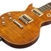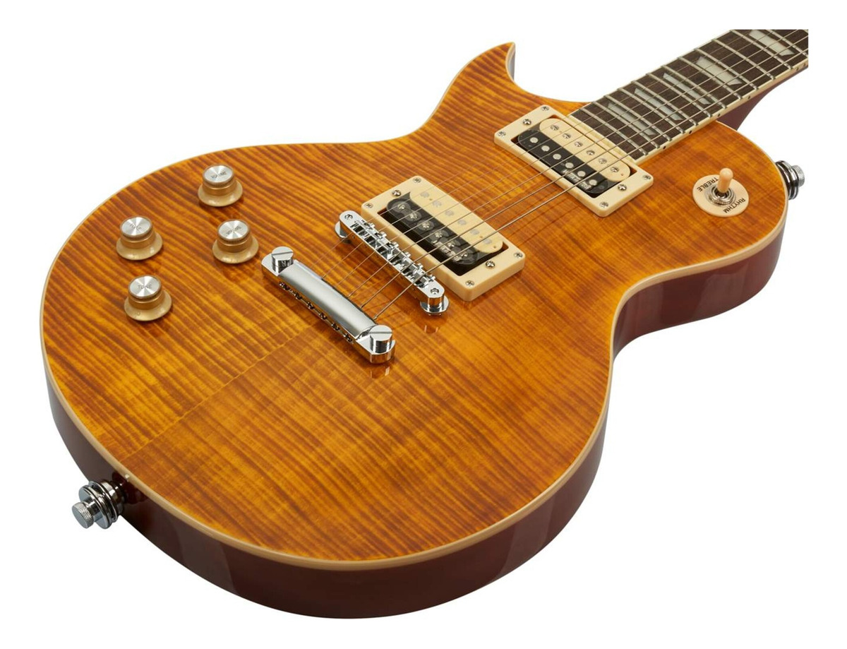 Esta guitarra está inspirada en el clásico diseño de las guitarras tipo Les Paul y ofrece un cuerpo sólido con un atractivo acabado Paradise en arce flameado, que no solo proporciona un aspecto distintivo sino que también puede influir en el tono del instrumento. El mástil encolado ayuda a mejorar la resonancia y el sustain, mientras que las pastillas humbucker ofrecen un tono cálido y potente, ideal para una amplia gama de estilos musicales desde el rock hasta el blues y más allá.