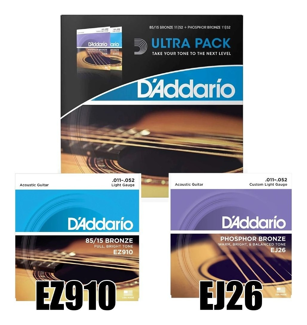 Guitarra Ultra Pack Strings D’addario 011-052 Ez910 + Ej26