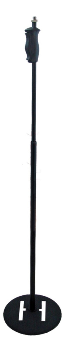 Soporte de micrófono de base redonda que incluye adaptador de rosca, abrazadera de afinación de metal y base de hierro fundido.