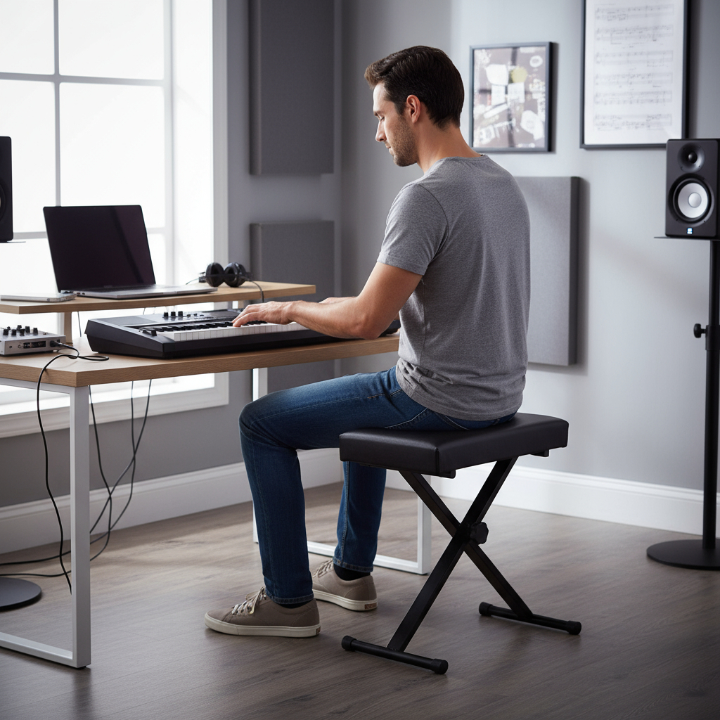 La Banqueta Piano Hamilton KB515K es el asiento de teclado ideal para músicos que buscan comodidad y resistencia. Su diseño ajustable permite adaptar la altura entre 56 cm y 71 cm, asegurando una postura ergonómica durante largas sesiones de práctica. Fabricada con una estructura de metal robusto y un tapizado en ecocuero negro, esta banqueta no solo es elegante, sino también fácil de limpiar y mantener. Su capacidad de plegado la convierte en una opción práctica para quienes necesitan transportarla o almacenarla con facilidad. Con un peso de 4825 g y dimensiones de 66 cm de altura, 15 cm de largo y 36 cm de ancho en su empaque, es perfecta para cualquier espacio. La marca Hamilton garantiza calidad y durabilidad, haciendo de este modelo KB515K una elección confiable para pianistas y tecladistas.