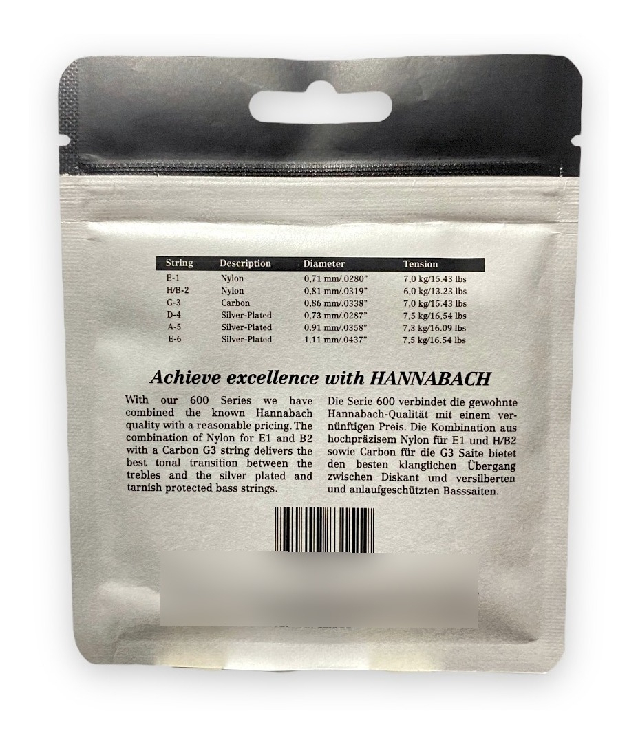 La línea 600 de Hannabach es reconocida por su equilibrio entre tradición y tecnología, ofreciendo una gama de calibres que van desde 0.71 hasta 1.11 milímetros, permitiendo una personalización del tono y la respuesta al tacto. Cada cuerda está diseñada para mantener la afinación y ofrecer una respuesta dinámica, desde las notas más agudas hasta las más graves, con una escala 4:4 que garantiza la precisión en cada nota.