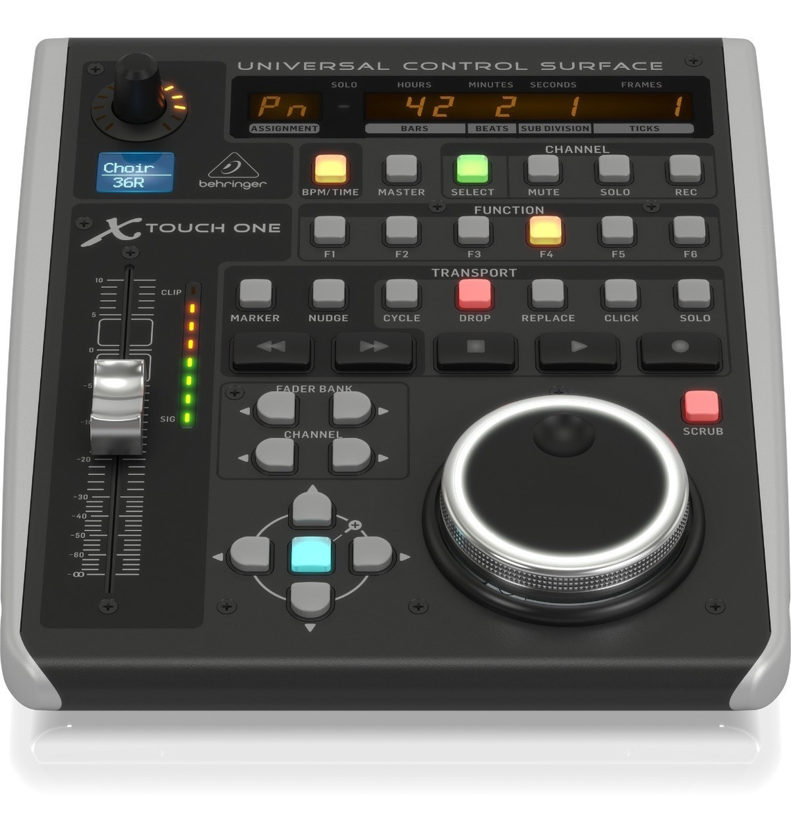 Una superficie de control como Behringer X-Touch One es una excelente manera de tomar el control de su mezcla. La automatización de escritura es fácil con su fader motorizado sensible al tacto. Un codificador rotatorio y 34 botones iluminados brindan acceso directo a las funciones clave. Una tira de garabatos LCD y un medidor LED de 8 segmentos le brindan una vista panorámica de su proyecto. También obtienes una gran rueda de selección y controles de transporte estilo cinta para una fácil navegación por tu DAW. La compatibilidad no es un problema para el X-Touch One: admite los protocolos HUI y Mackie Control con ajustes preestablecidos para cada DAW principal.