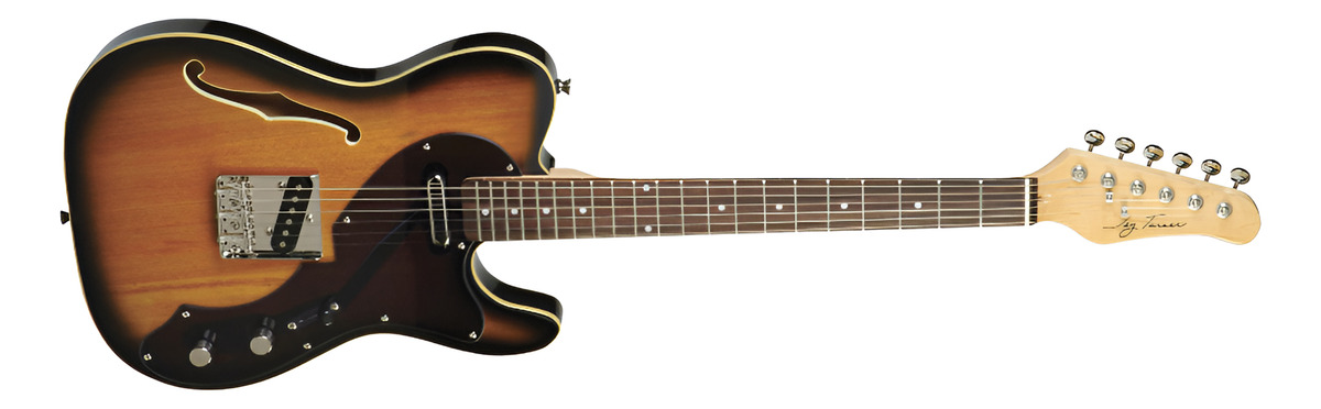 Guitarra tipo Asat / Tele, cuerpo semisólido con agujero esculpido. mastil de Maple, diapasón de Rosewood. Alnico pickups, selector switch, 1 controlador de Volumen y 1 de Tono, pick guard y clavijas fundido a presión.