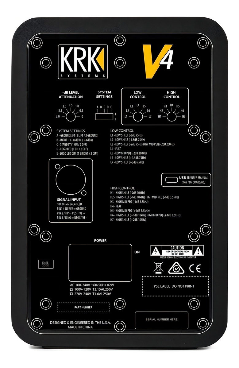 Los monitores de estudio KRK V4S4 han sido diseñados específicamente para aplicaciones de producción de audio donde la reproducción precisa y coherente es imprescindible. Cuenta con un ecualizador con 14 ajustes seleccionables que garantizan la correcta configuración acústica. La serie de V utiliza el legado de 30 años de KRK en el desarrollo y producción de monitores de estudio de clase mundial, desde los amplificadores custom de clase D hasta su distintivo acabado con los conos amarillos.