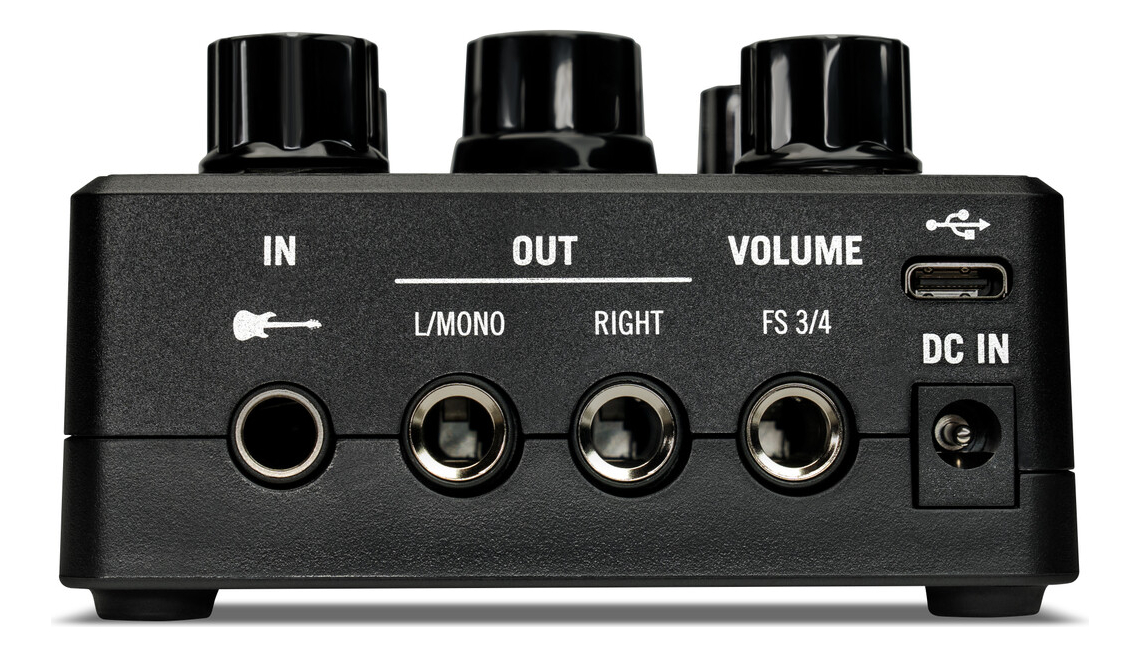 Las características adicionales incluyen salidas estéreo, tap tempo, un sintonizador, una puerta de ruido, una salida de auriculares y una interfaz de audio USB-C con capacidades de reamplificación. Agregue un pedal de expresión opcional para controlar el volumen o hasta dos footswitchs para seleccionar ajustes preestablecidos o activar y desactivar efectos.