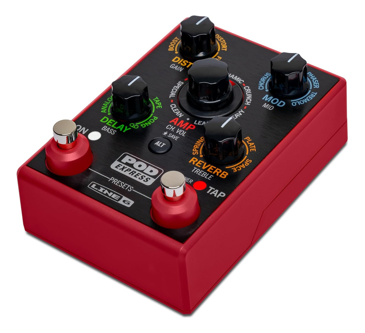 POD Express Guitar es una pedalera de guitarra y procesador de efectos ultraportátil que permite a los guitarristas llevar sus tonos a donde quieran.