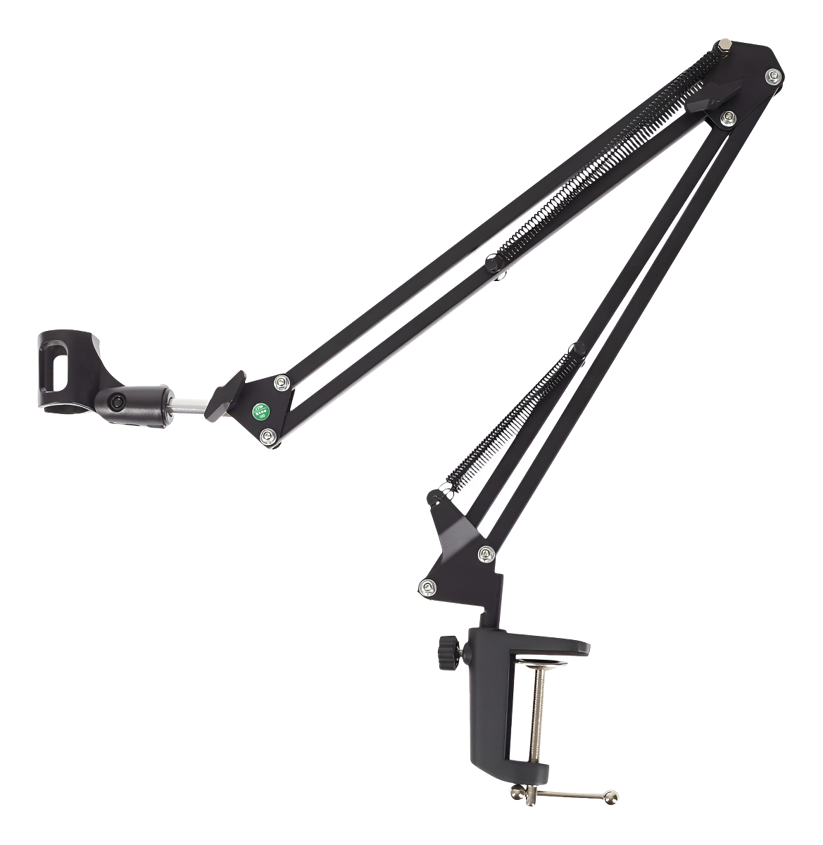 El soporte de alta resistencia está fabricado con un marco de acero de alta calidad y cuenta con resortes de suspensión dobles en cada brazo, protegiendo el micrófono de caídas repentinas.