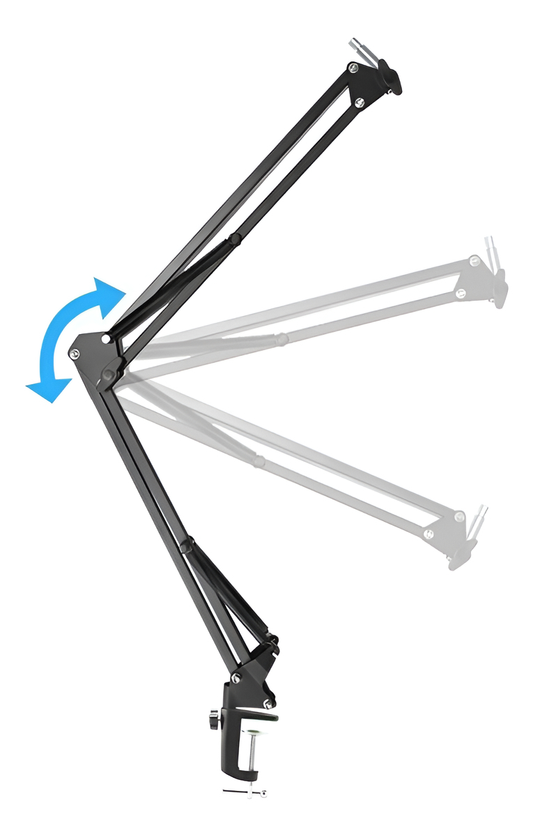 Los soportes de micrófono con brazo ofrecen una colocación rápida y conveniente del micrófono. El estilo de clamp de mesa se adhiere a superficies horizontales o verticales como escritorios, mesas, estantes y mostradores, permitiendo posicionar el micrófono donde sea necesario con facilidad para maniobrar y ajustar.