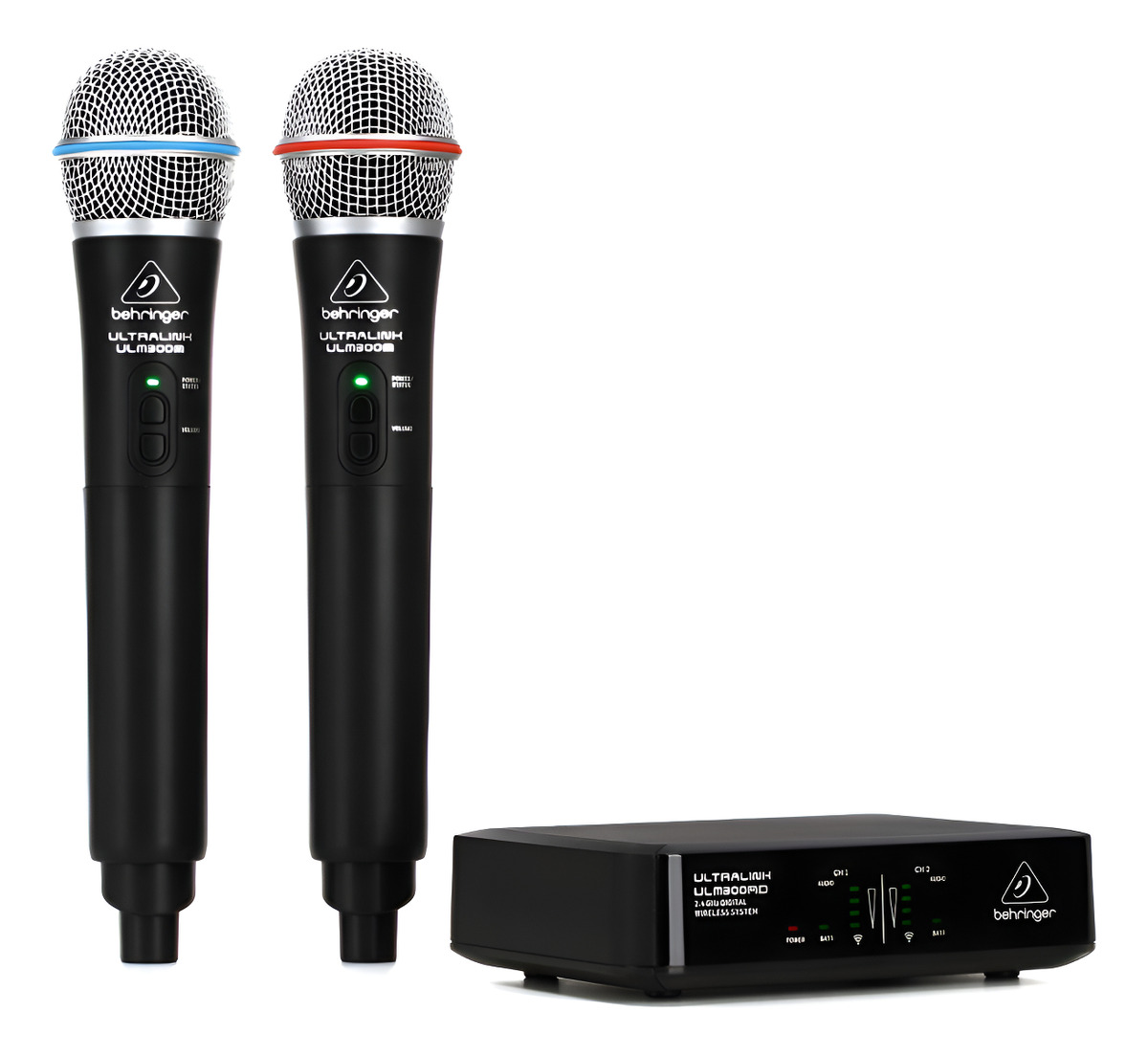 Dos micrófonos de mano inalámbricos ULM300M * Receptor inalámbrico de doble canal * Cápsulas de micrófono de calidad profesional * Ideal para aplicaciones vocales dedicadas * La frecuencia inalámbrica digital de 2,4 GHz garantiza un rendimiento sin interferencias * Alcance inalámbrico de 60 metros (200 pies) * Botones de volumen integrados y silencio de pánico en cada micrófono * Conectores de salida de audio XLR balanceado y no balanceado 1/4” TS
