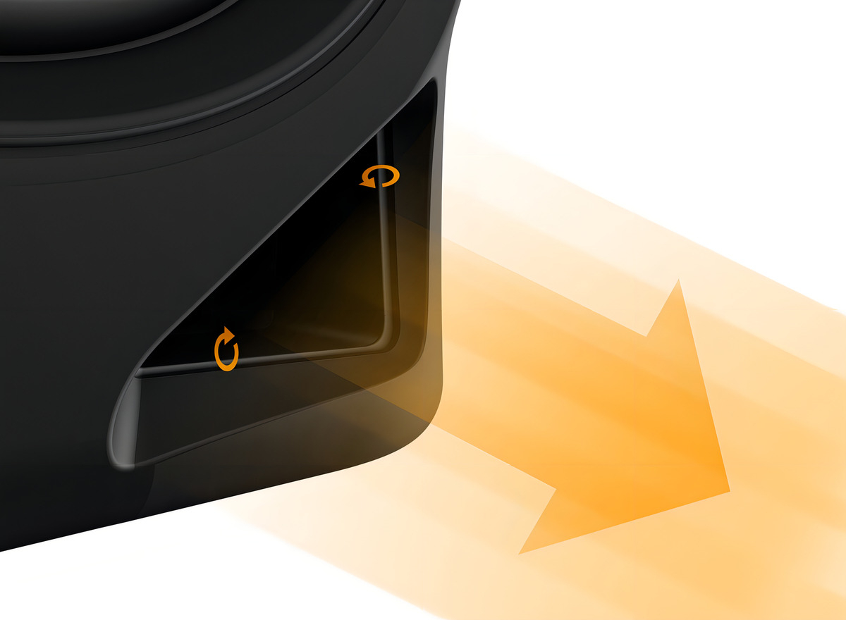Conductos ranurados: los surcos en los conductos reducen la fricción del aire, lo que permite obtener unos graves firmes y potentes, incluso con los altavoces cerca de la pared. Los bordes frontales curvos proporcionan la máxima rigidez y la mínima resonancia para un audio nítido a cualquier nivel de volumen. Woofer