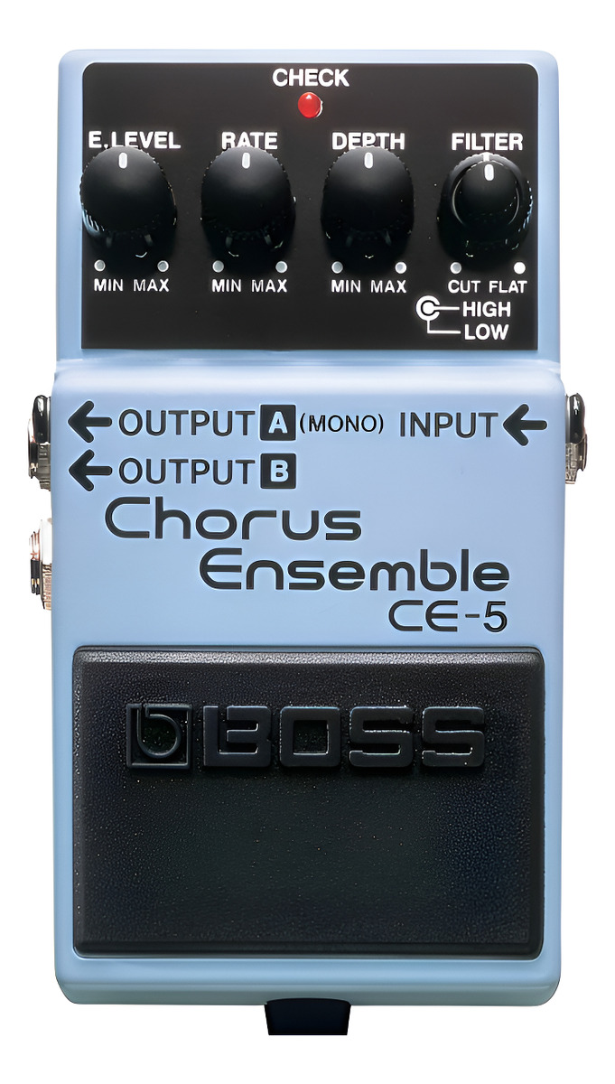 El CE-5 Chorus Ensemble produce todo desde un chorus suave y natural al popular y penetrante chorus estéreo de la música contemporánea. Cubre una amplia frecuencia que incluye filtros corta bajos y corta altos