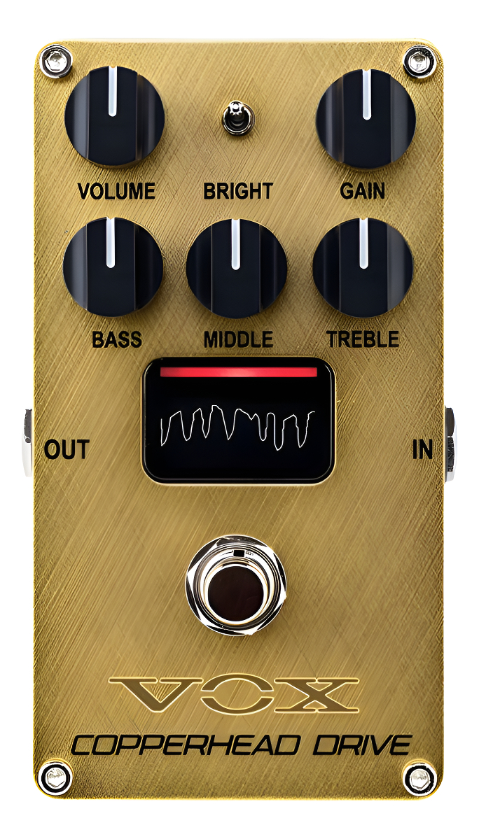 Inspirado en los tonos de amplificador británico gruesos y contundentes, el Copperhead Drive va más allá de la categoría de amplificador en una caja para ofrecer un pedal de distorsión de válvula verdaderamente flexible. La ruta de señal totalmente analógica y Nutube permiten tonos de distorsión y overdrive genuinos con la sensación de un amplificador de válvulas real, mientras que el voltaje realzado internamente brinda mayor margen y dinámica. Además, la pantalla OLED muestra un osciloscopio mientras el pedal está activo o anulado, lo que le permite comprender exactamente cómo se ve afectada su señal.