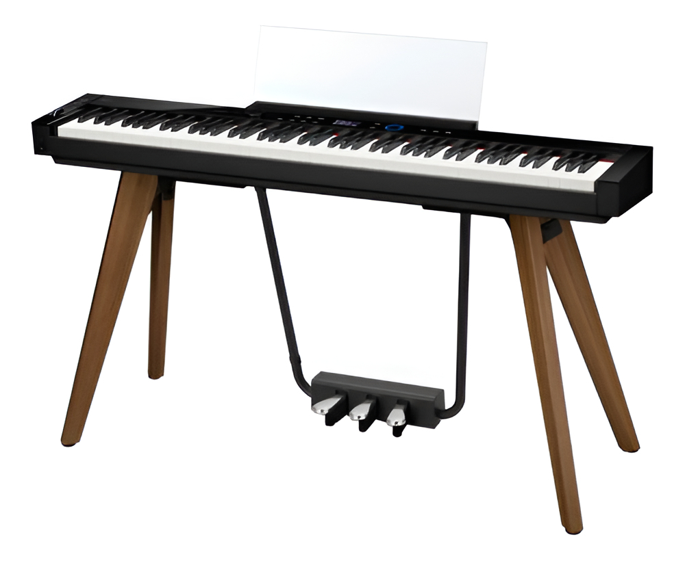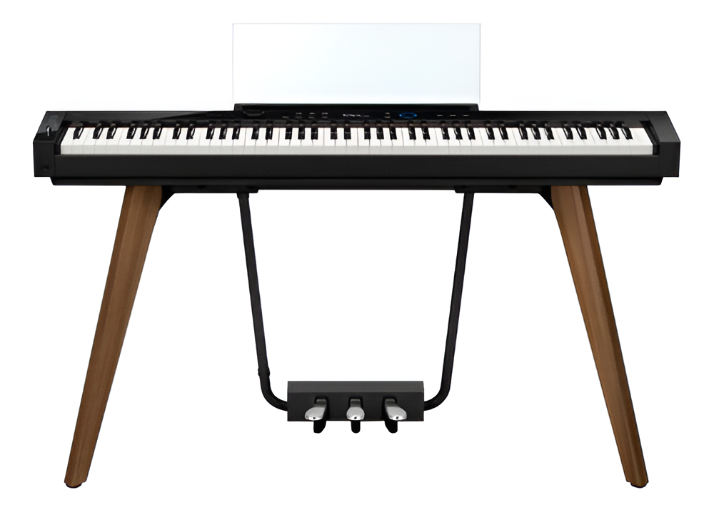 El Privia PX-S7000 redefine el estándar de los pianos digitales. Este modelo combina la estética integrada en los pedales y la base incorporados, con las innovadoras tecnologías de sonido de Casio y la sensación auténtica de un piano de cola. Diseño completamente integrado con líneas simples y definidas. La nueva tecnología de sistema de sonido espacial utiliza cuatro altavoces de rango completo de acción individual alojados en una estructura rígida fabricada con material compuesto de madera y resina. La función de posición de piano optimiza la acústica dependiendo de dónde se encuentre el piano digital. Incluye un grupo de tonos de piano eléctrico y piano acústico meticulosamente elaborados. El teclado con acción de martillo híbrido, inteligente, combina un mecanismo avanzado de teclado físico con tecnología de control digital para conseguir una interpretación altamente expresiva. Los pedales táctiles de alta calidad se sienten como los de un piano de cola acústico. Conector de entrada de micrófono de plug estándar (plug TS) con perilla de volumen de micrófono dedicada para conectar un micrófono que se puede utilizar con diversos efectos de micrófono que mejoran las voces.
