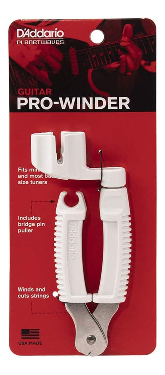 La Pro-Winder es una manivela de alta calidad con un alicate y herramienta para sacar pines de puentes incorporados. Está diseñada para calzar virtualmente en todas las guitarras, banjos, ukeleles y mandolinas. Ergonómicamente diseñada con pinzas de acero endurecido duradero, la manivela Pro-Winder es la herramienta definitiva para cambiar cuerdas!